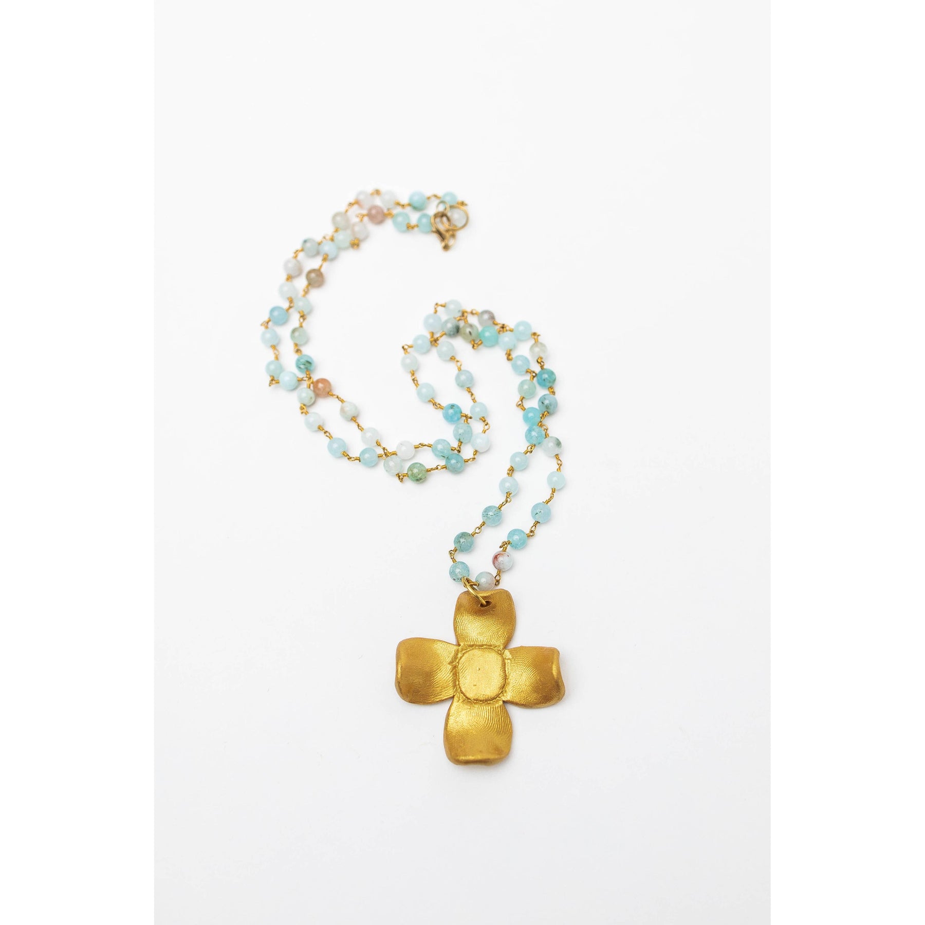 34" Amazonite Chain with Dogwood Blossom Necklace Feel close to the Lord as you remember the beautiful significance of the dogwood! It was tree that the cross of Christ hung from and now is a symbol of rebirth, renewal and purity! This beautiful necklace can give you hope and joy as you remember nothing is too hard for our great God! Scripture on back: Ezra 10:4, "Rise up, take courage and do it."