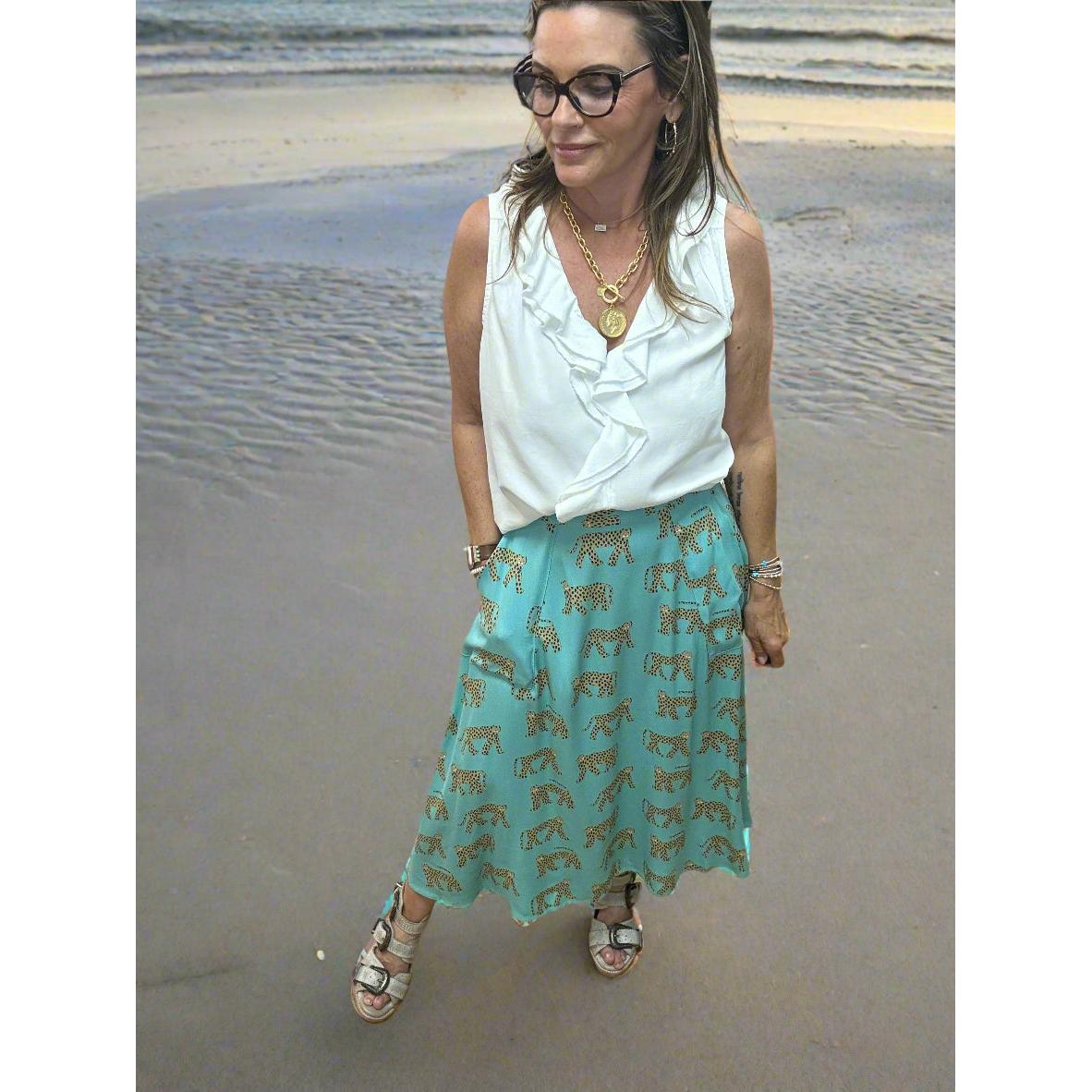Step out in fierce fashion with this eye-catching jaguar print midi skirt. Pair it with a solid top to let the stunning print take center stage.